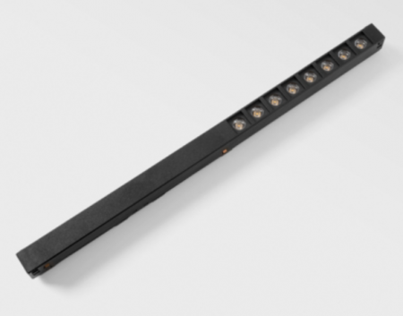Slim square shaped LED linear luminaire suitable for use in a low voltage (48V DC) magnetic rail system.